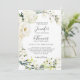 Com um popular esquema de cor neutra de rosas brancas e hidrangeas com eucalipto e verde à direita, este convite único para o casamento tem um código QR no verso do convite para todos em um para fornecer informações sobre seu site de casamento. Convidados de casamento podem RSVP e ver todos os detalhes em torno de seus eventos de casamento, agenda, acomodações de hotel, informações de recepção e muito mais. O convite econômico "tudo em um" tem todas as informações contidas no convite para não exigir RSVP ou cartão de gabinete. As flores neste design popular incluem rosas de aquarela macia, híbridos e flores misturadas em uma coroa aberta ao redor do seu texto. Os emparelhamentos de texto usados neste layout apresentam os nomes da noiva e do noivo usando um rosto de tipo manuscrito misturado a um serifa sempre popular. Personalize o modelo de texto fácil com seus detalhes de casamento.