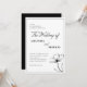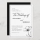 Este convite de casamento preto e branco moderno apresenta caligrafia elegante negra, quadro negro e flor, com elegante revestimento preto sólido.