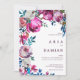 Este design de convite para o casamento de flores coloridas apresenta convites florais cor-de-rosa brilhante, roxo, azul e branco, que são perfeitos para qualquer cerimônia elegante e sofisticada. Este design de flores de jardim é ideal para a moda e casal. Personalize este design com sua mensagem e informações personalizadas. Todas as designs são impressas.