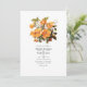 Convite de casamento floral de caqui. Ideal para um casamento no jardim. O código QR no verso direciona para o site do seu casamento, onde as pessoas podem saber mais e responder.