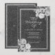 Um convite de casamento floral clássico tradicional com caligrafia manuscrita branca elegante e brilho preto, branco e cinza pintado à mão com flores em aquarela e bordas elegantes com brilho prata.