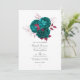 Convite de casamento floral turquesa-teal e borgonha trendy. Ideal para qualquer tema ou casamento no jardim. O código QR no verso direciona para o site do seu casamento, onde as pessoas podem saber mais e responder.