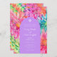 Colorida Moderna Cor de Água Tropical Clorosa Casamento Floral Os convites apresentam flores tropicais coloridas de cor d'água em rosa, roxo, laranja, verde e turquesa. Adicione suas informações personalizadas de convite de casamento no quadro em tipografia elegante de script de caligrafia branca. Personalize editando o texto nas caixas de texto. Projetado para você pelo Evco Studio www.zazzle.com/store/evcostudio