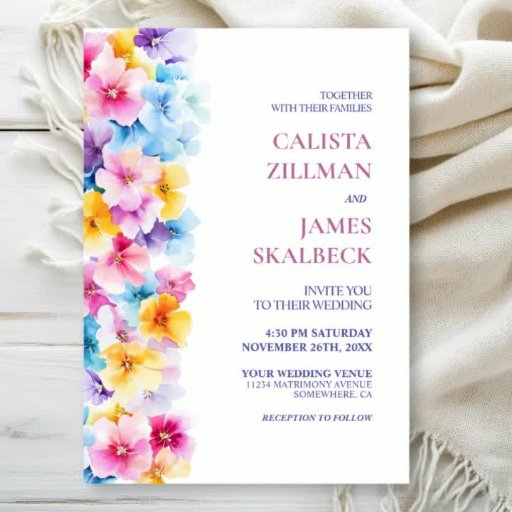 Avise seus amigos e família sobre seu dia especial em estilo com esse cartão de casamento floral colorido. Os modelos de texto fáceis de usar tornam a adição de todas as informações necessárias uma tarefa rápida e simples. Com uma variedade de tipos de papel e estilos de canto para escolher, você pode criar placas verdadeiramente exclusivas que reflitam sua individualidade, juntamente com a opção de baixar se preferir um formato digital.