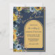 Convite Casamento Floral com Girassóis Azul-Marinho