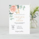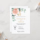 Um fundo branco chic. Decorados com ouro-rosa e folhas de eucalipto cor-de-rosa-esbranquiçada, flores de rosa e cor-de-rosa-esbranquiçada, galhos, verde-verde e um cinzeiro de ouro falso. Personalize e adicione seus nomes e detalhes do casamento. Letras pretas e ouros coloridas.