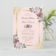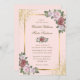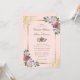 Convide seus hóspedes para sua elegante festa de casamento de ouro e blush com estes convites florais de casamento com flores cor-de-rosa escamoteadas com detalhes de casamento dentro de uma moldura de ouro enfeitada com confete de ouro. Itens correspondentes disponíveis. Personalizar facilmente online.