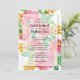Lindas e grandes flores cor-de-água cor-de-rosa com botões amarelos e folhas verdes acenam esses convites para casamento com seus detalhes de cerimônia em caracteres quicos em uma camada branca transparente. CORRESPONDENTE a itens na nossa coleção.
