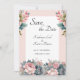 Este é um elegante casamento cor-de-rosa Salve o convite da data com belos rosa poeirentos e flores azuis lacrimogêneas. Esta design é perfeita para uma festa de verão, primavera ou casamento de jardim.