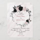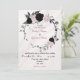 elegantes flores pretas e cor-de-rosa macia com cinzas folhas convite para casamento botânico Os detalhes da brilha são simulados