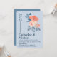 Convite Casamento Floral Coral Rosa e Azul Dusty