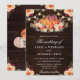 Este convite de casamento outonal rústico apresenta um fundo de madeira quente adornado com abóboras aquareladas, flores ricas de outono, folhagens suaves e luzes de corda cintilantes. A mistura de tons de laranja, creme e burgundy cria uma atmosfera romântica inspirada na colheita, perfeita para uma cerimônia de outono. Com sua paleta sazonal aconchegante e charme rústico elegante, este design traz um toque sincero e festivo para qualquer celebração de casamento de outono.