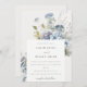 Convite Casamento Floral de Algodão Azul-Escuro