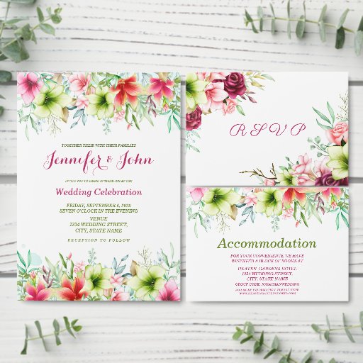 Convide seus hóspedes em estilo para o seu casamento ou seus entes queridos com este cartão de convite de casamento floral magenta vermelho amarillis. Você pode adicionar facilmente o(s) seu(s) nome(s) personalizado(s) e os detalhes do casamento clicando no botão "personalizar". Ao clicar em "personalizar mais", você pode alterar a cor e o estilo da fonte. Entre em contato comigo por e-mail se precisar de ajuda ou produtos correspondentes em shabnamahsanatzazzle@gmail.com