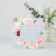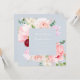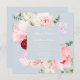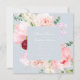 Um convite romântico elegante para casamento apresenta um buquê floral de aquarela em tons de blush e rosa em um fundo azul macio. Personalize com todos os detalhes importantes como seus nomes, data do casamento, hora e local.