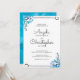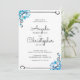 Flores azuis afiadas adoram este convite de casamento de cor d'água. Peronalize este design alterando o texto, a cor do texto ou a face do tipo. Você pode até adicionar uma cor de fundo. O padrão azul aqua no verso é opcional. Disponível em outros produtos de casamento.