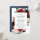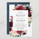 Nosso convite de casamento Floral Encantado mostra seus detalhes de casamento cercados por um elegante quadro floral de burgundy, rosa-pincel e marinho azul-aquarela flores e folhagem verde-escura. Os convites de casamento botânico na moda são perfeitos para casamentos de jardim.