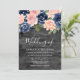 Convite Casamento Floral de Blush e Marinho de Carvão Russ