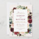 Um design de moldura de ouro com uma bela coroa floral burgundy no fundo. A cor e o texto podem ser editados para corresponder ao tema do casamento. você pode alterar o tamanho do texto, a fonte e o posicionamento.