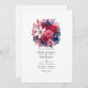 Convite para casamento floral de Burgundy e marinho. O código QR no verso direciona para o seu local de casamento onde o pessoas pode aprender mais e rsvp.