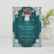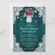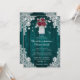 Teal russo e convite floral burgundo para o casamento apresentando um buquê de rosas e flores para o hálito de bebê dentro a mason jar contra um fundo de madeira de celeiro adornado com rendas florais brancas e luzes de cordas. Design de cartão perfeito para convidar seus hóspedes para a sua festa de casamento rusticada e lacrimogênea. Personalize facilmente este convite de casamento com os seus detalhes de casamento online. Design totalmente personalizável. Itens correspondentes disponíveis.