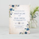 O convite para o casamento de madeiras florais rústicas românticas e elegantes, com cor de água romântica romântica floral, apresenta um buquê de rosas de cor de água de pêssego azul Marinho, rosa-pincel e cor de pêssego com folhagem correspondente. Perfeito para um casamento no outono/no meio do verão. Por favor, encontre mais designs e variações na minha loja de "blisswedingpaperie". E fique à vontade para me contactar para mais personalizações ou itens correspondentes.