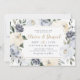Uma estrutura geométrica com borda de linha de ouro cercada por floral botânico e verde-aquarela em azul macio, poeirento, e cinzas, elegante e romântico, excelente para casamento moderno, casamento romântico e casamento de jardim botânico. Veja todas as peças correspondentes na coleção.