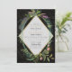 Um moderno convite para o casamento floral tropical preto, rosa, verde e dourado confetti é perfeito para qualquer evento ou ocasião clássico e sofisticado. Este belo design floral tropical preto e dourado de aquarelas é perfeito para o indivíduo ou casal da moda e na moda. Personalize este design com sua própria mensagem e informações personalizadas. Todas as designs são impressas.