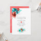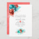 Turquesa e rosas de corais vivos e folhagem tropical de folhagem de verão convites para casamento projetados para serem rápida e facilmente personalizados de acordo com suas especificidades de evento.