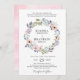Trendy convite para o casamento no meio do verão, apresentando coroa floral chica clássica com rosas e peônias pintadas em cores neutras de cor rosa rosa, creme, pêssego, azul empoeirado e tons verdes macios. Esta coleção é perfeita para temas clássicos de casamento com coloração d'água. Por favor, encontre mais designs e variações na minha loja de "blisswedingpaperie". E fique à vontade para me contactar para mais personalizações ou itens correspondentes.