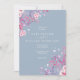 Um convite de casamento de flores silvestres country charmoso, apresentando uma mistura de buquês de flores silvestres em aquarela roxa, lilás e rosa. Este convite de casamento elegante pode ser personalizado com as informações do seu dia especial de casamento em tipografia branca chic em um fundo azul empoeirado. Criado por Thisisnotme©