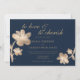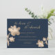 Um clássico e elegante roteiro na moda de ouro caligrafia marinho azul formal e dourado pintado convites para casamentos florais.
