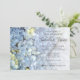 Convide convidados para a cerimônia de casamento do tema do jardim de verão e a recepção com o elegante Convite de Casamento Floral de Hydrangea Blue. Este bonito convite de casamento de flores personalizado apresenta uma fotografia floral melhorada digitalmente de um flor azul de hydrangea.