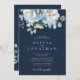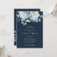 Convite Casamento Floral de Inverno Azul de Aquarela