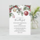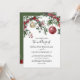 Convites de casamento de inverno rústicos com um fundo branco simples, flores aquareladas festivas & folhagens, bolas vermelhas de natal & douradas, e um modelo de casamento elegante que é fácil de personalizar.