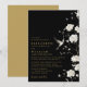 Este convite de casamento elegante em preto e dourado com jardim floral em estilo chinoiserie pode ser personalizado com suas informações em tipografia moderna. Desenhado por Thisisnotme