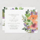 Convite De Casamento Floral Laranja Púrpura De Cor De Água Minimalista
