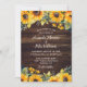 Convite Casamento Floral de Madeira Rústica de Girassol