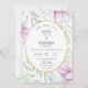 © Socialite Designs & LICENCORS. Convite de casamento com moldura de flor de magnólia elegante. O design tem uma adorável moldura de magnólia com faixa de texto branco e dourado para as informações do seu casamento. Se você gostaria de outros produtos com este design, por favor entre em contato com Socialite Designs.