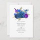 Convite Casamento Floral de marinho Azul, Dourado e Púrpur