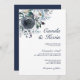 Pintado com uma mão elegante, design de buquê floral com cor azul, marinho e pasta clara; rosas, verde, galhos. Easy DIY (faça você mesmo) cartões editáveis de convite para casamento de modelo; perfeito para casamentos orçamentários - convites de qualidade ainda que baratos, barato. Lá atrás há monogramas noivos e noivos e espaço para adicionar sites. Design adequado para qualquer época do ano. Consulte a coleção 'CAMILA' para obter itens correspondentes.