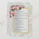 Mármore prateado com notas florais cor-de-rosa convite para o casamento