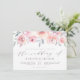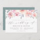 Um convite de casamento moderno, com um buquê de flores aquáticas em tons de rosa-pincel, roxo e creme. Seus detalhes de casamento personalizados aparecem abaixo em uma tipografia elegante.