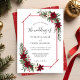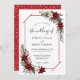 Celebre seu dia especial com este elegante convite de casamento floral de Natal de inverno. Apresentando um sofisticado design com delicadas flores vermelhas e brancas, finas folhas verdes e sutis sotaques de morango, esse convite capta a essência de um casamento no inverno. O marfim ou fundo branco mutado adiciona um toque moderno, enquanto os florais de canto trazem um aspecto festivo, mas refinado. Perfeito para casais que querem um convite para na moda e eterno com uma dica de Natal.