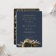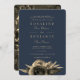 Convite Casamento Floral de Ouro Azul Marinho Único Luxuos