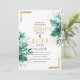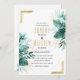 O clássico elegante monstera tropical branco, verde e dourado pintado à mão de uma coloração d'água deixa convites florais para casamentos. Este convite floral de abstrato de verão de na moda é perfeito para qualquer garota chique clássica e sofisticada. Este design é ideal para um evento de festa elegante e de tendências. Personalize este design com sua própria mensagem e informações personalizadas. Todas as designs são impressas