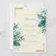 O clássico elegante verde florestal, marfim e monstera tropical pintada manualmente com cor d'água deixa convites florais de casamento. Este convite floral na moda romântico é perfeito para qualquer garota clássica e sofisticada. Este design é ideal para um evento de festa elegante e de tendências. Personalize este design com sua mensagem e informações personalizadas. Todas as designs são impressas