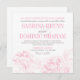 Design de convite para casamento de peônias elegantes e românticas em rosa e esquema de cores de cinza de pewter. Formato de cartão quadrado. Inclui nomes pai.