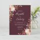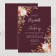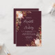 Este elegante convite de casamento moderno apresenta aquarela cai em forma floral e folhagem de outono em tons suaves de terra em dois cantos num fundo burgundy. O texto personalizável combina manuscrito branco e branco, fontes em copperplate e itálico. O lado inverso é sólido.