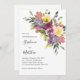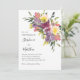 Estes convites para o casamento apresentam um design floral de aquarela moderno com flores e folhagem roxas, roxas e cor-de-rosa. Material de papelaria correspondente também disponível.